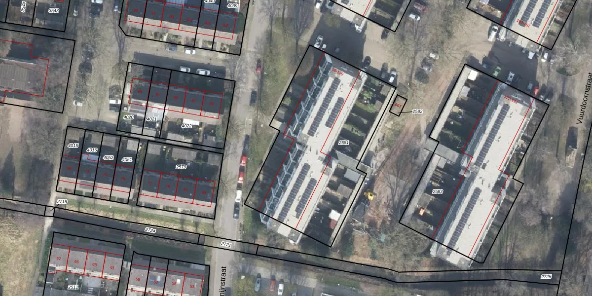 Het perceel waarop het adres ligt is VSN02-H-2581. De afkorting 'VSN02' staat voor kadastrale gemeente Vaassen. Het perceel is kleiner dan gemiddeld in Vaassen. Het perceel is 1895 m² groot, terwijl het gemiddelde ligt op 5565,73 m². Het kleinste perceel in de kadastrale gemeente is 0 m² groot. De grootste perceeloppervlakte is 1,98 km². Op het perceel zijn 36 adressen aanwezig. De huidige grenzen van het perceel zijn digitaal in de Basisregistratie Kadaster (BRK) geregistreerd op 13-09-2010.