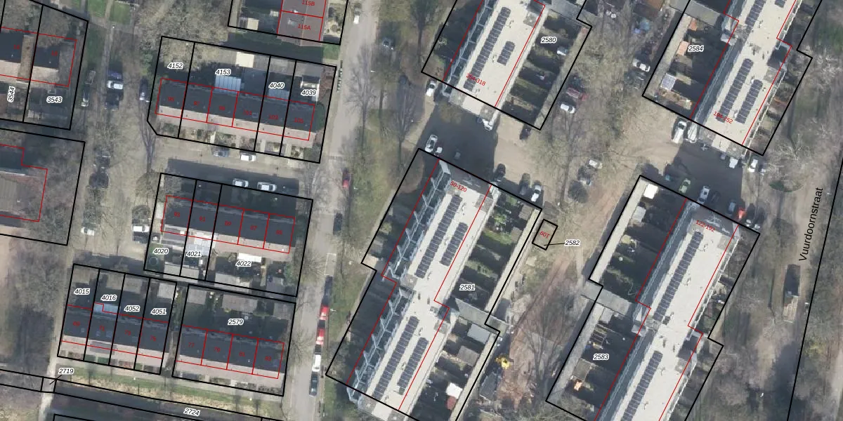 Het perceel waarop het adres ligt is VSN02-H-2581. De afkorting 'VSN02' staat voor kadastrale gemeente Vaassen. Het perceel is kleiner dan gemiddeld in Vaassen. Het perceel is 1895 m² groot, terwijl het gemiddelde ligt op 5565,73 m². Het kleinste perceel in de kadastrale gemeente is 0 m² groot. De grootste perceeloppervlakte is 1,98 km². Er zijn 36 adressen aanwezig op het perceel. In de Basisregistratie Kadaster (BRK) werden de grenzen van het perceel geregistreerd op 13-09-2010.