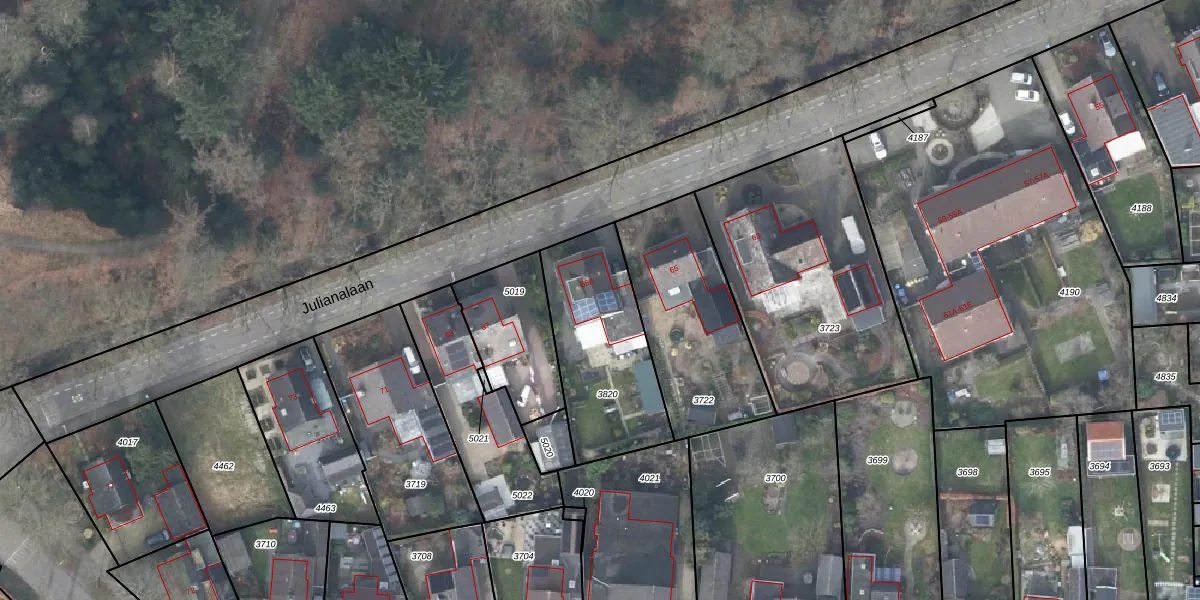 Gebruik de zoekbalk of klik op een perceel voor informatie over de adressen binnen dit perceel.