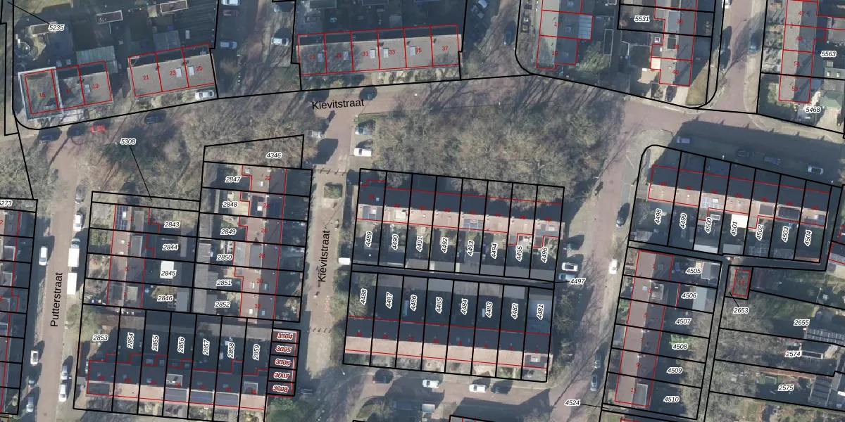 Gebruik de zoekbalk of klik op een perceel voor informatie over de adressen binnen dit perceel.
