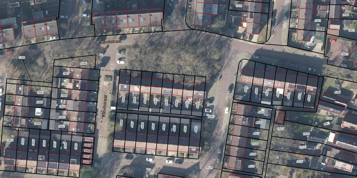 Gebruik de zoekbalk of klik op een perceel voor informatie over de adressen binnen dit perceel.