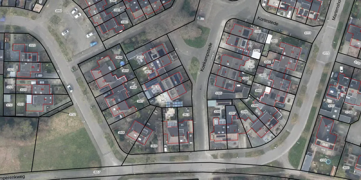 Het perceel waarop Koekampstede 1 staat heeft een oppervlakte van 241 m². Dit is een middelgroot perceel. De perceeloppervlakte wordt geregistreerd door het Kadaster. Gedetailleerde informatie over de maten van dit perceel kunt u vinden in het rapport Kadastrale kaart met maatvoering van Koekampstede 1.