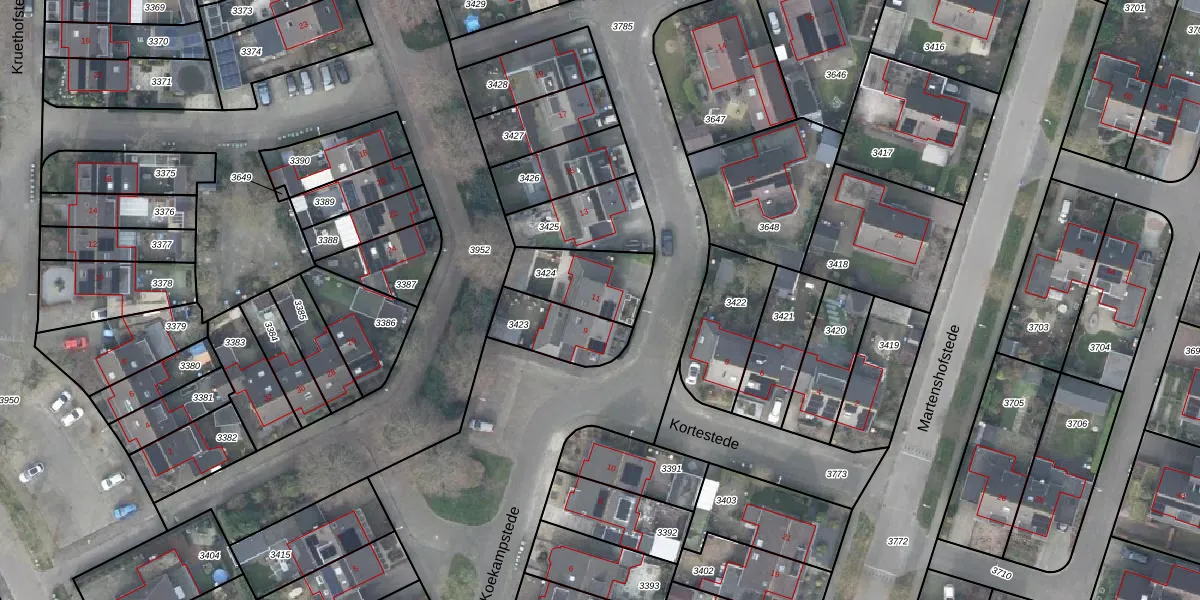 Gebruik de zoekbalk of klik op een perceel voor informatie over de adressen binnen dit perceel.