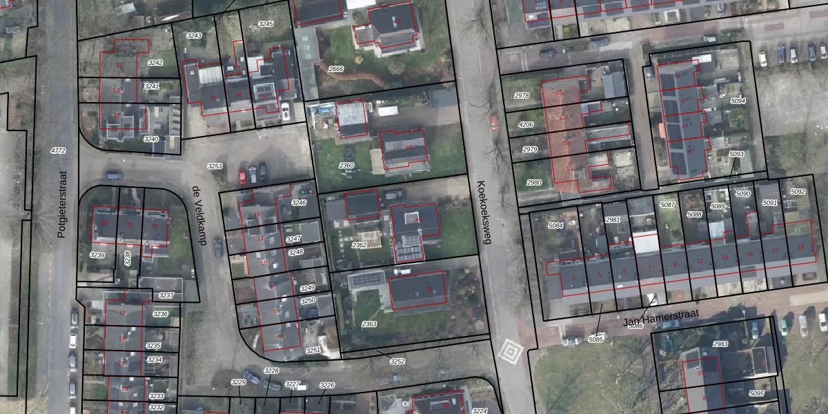 Het perceel waarop Koekoeksweg 44 staat heeft een oppervlakte van 714 m². Dit is een groot perceel. De perceeloppervlakte wordt geregistreerd door het Kadaster. Gedetailleerde informatie over de maten van dit perceel kunt u vinden in het rapport Kadastrale kaart met maatvoering van Koekoeksweg 44.