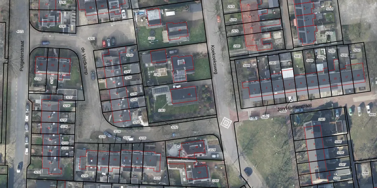 Gebruik de zoekbalk of klik op een perceel voor informatie over de adressen binnen dit perceel.