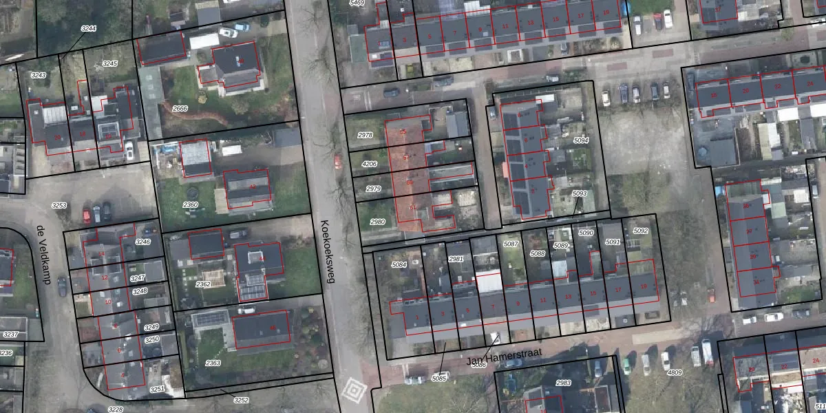 Het perceel waarop Koekoeksweg 61 staat heeft een oppervlakte van 317 m². Dit is een groot perceel. De perceeloppervlakte wordt geregistreerd door het Kadaster. Gedetailleerde informatie over de maten van dit perceel kunt u vinden in het rapport Kadastrale kaart met maatvoering van Koekoeksweg 61.