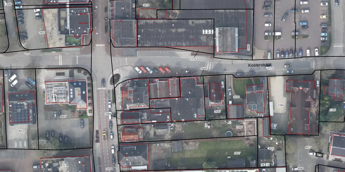 Het perceel waarop Kosterstraat 6 staat heeft een oppervlakte van 582 m². Dit is een groot perceel. De perceeloppervlakte wordt geregistreerd door het Kadaster. Gedetailleerde informatie over de maten van dit perceel kunt u vinden in het rapport Kadastrale kaart met maatvoering van Kosterstraat 6.