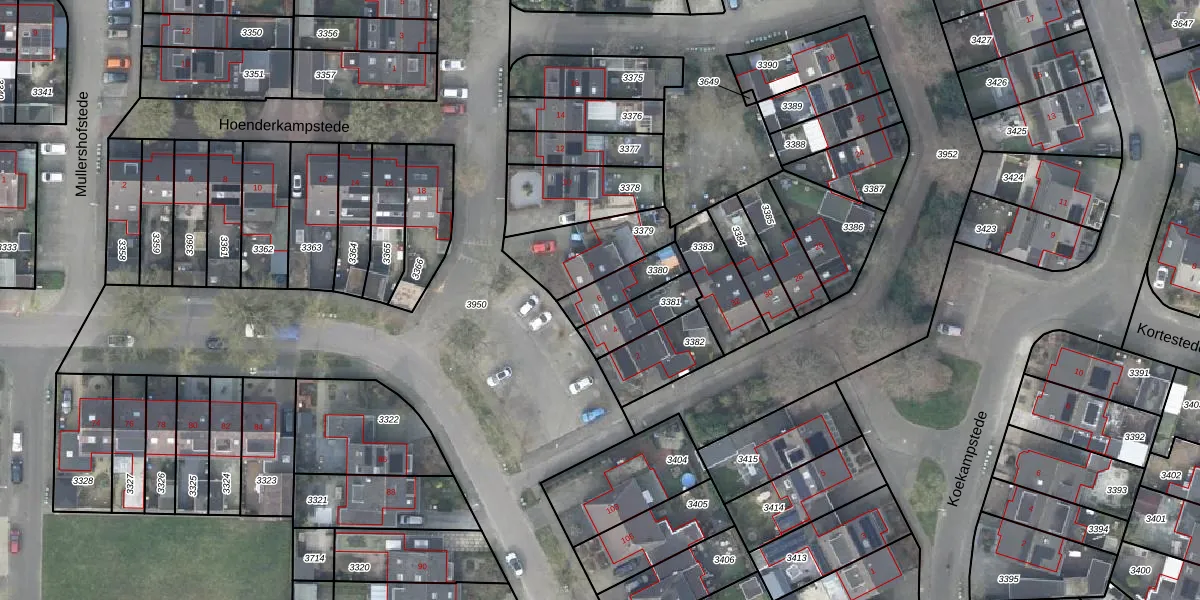 Gebruik de zoekbalk of klik op een perceel voor informatie over de adressen binnen dit perceel.