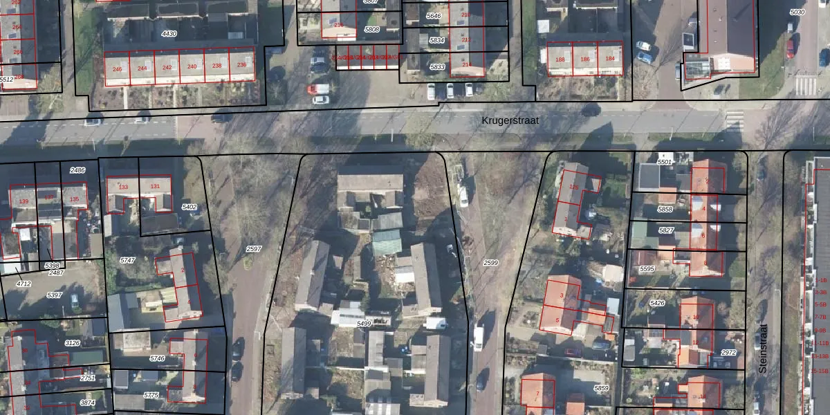 Krugerstraat 127-E is gelegen op kadastraal perceel VSN02D5499. Deze kadastrale aanduiding is uniek en wordt gebruikt door het Kadaster om eigendomsrechten en andere zakelijke rechten vast te leggen. Het perceel maakt onderdeel uit van de kadastrale gemeente Vaassen.