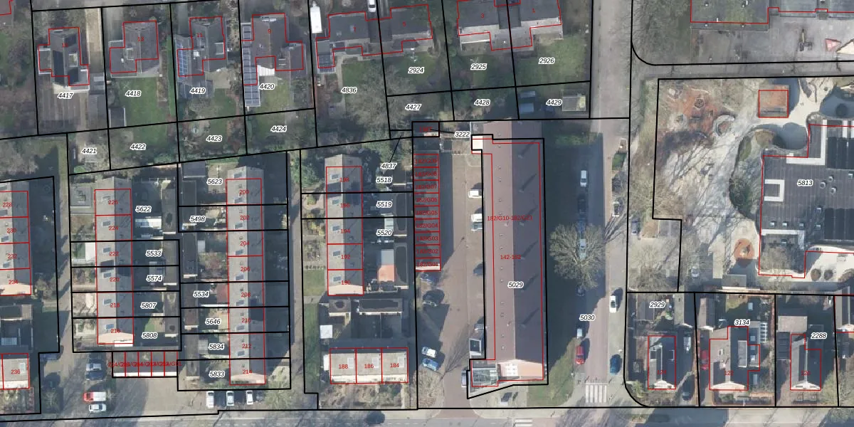 Het perceel waarop Krugerstraat 182-G05 staat heeft een oppervlakte van 2258 m². Dit is een zeer groot perceel. De perceeloppervlakte wordt geregistreerd door het Kadaster. Gedetailleerde informatie over de maten van dit perceel kunt u vinden in het rapport Kadastrale kaart met maatvoering van Krugerstraat 182-G05.