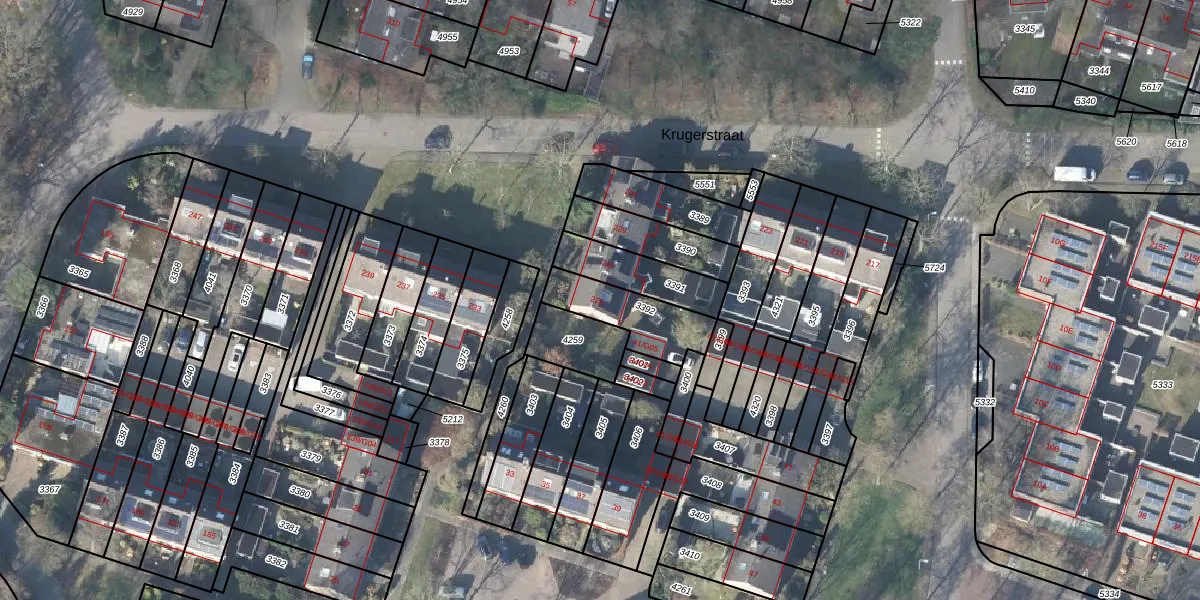 Het perceel waarop Krugerstraat 225 staat heeft een oppervlakte van 214 m². Dit is een middelgroot perceel. De perceeloppervlakte wordt geregistreerd door het Kadaster. Gedetailleerde informatie over de maten van dit perceel kunt u vinden in het rapport Kadastrale kaart met maatvoering van Krugerstraat 225.