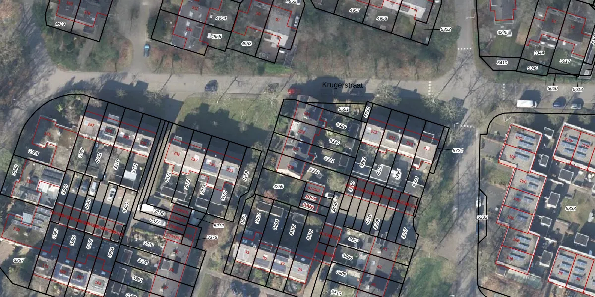 Krugerstraat 227 is gelegen op kadastraal perceel VSN02D3391. Deze kadastrale aanduiding is uniek en wordt gebruikt door het Kadaster om eigendomsrechten en andere zakelijke rechten vast te leggen. Het perceel maakt onderdeel uit van de kadastrale gemeente Vaassen.