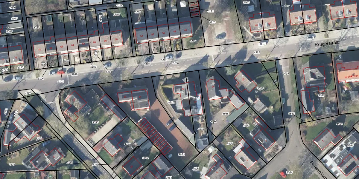 Het perceel waarop Krugerstraat 29 staat heeft een oppervlakte van 525 m². Dit is een groot perceel. De perceeloppervlakte wordt geregistreerd door het Kadaster. Gedetailleerde informatie over de maten van dit perceel kunt u vinden in het rapport Kadastrale kaart met maatvoering van Krugerstraat 29.