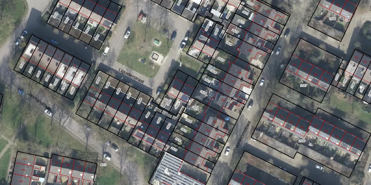 Gebruik de zoekbalk of klik op een perceel voor informatie over de adressen binnen dit perceel.