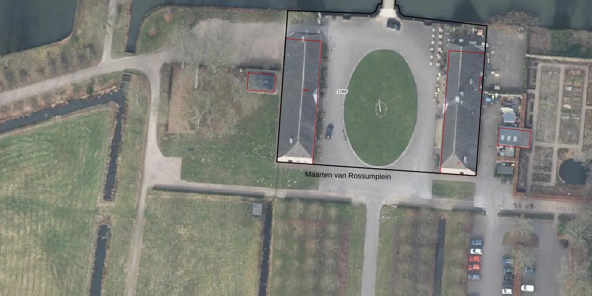 Het perceel waarop Maarten van Rossumplein 5 staat heeft een oppervlakte van 4755 m². Dit is een zeer groot perceel. De perceeloppervlakte wordt geregistreerd door het Kadaster. Gedetailleerde informatie over de maten van dit perceel kunt u vinden in het rapport Kadastrale kaart met maatvoering van Maarten van Rossumplein 5.