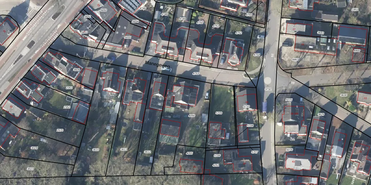 Het perceel waarop Manegeweg 10 staat heeft een oppervlakte van 1090 m². Dit is een zeer groot perceel. De perceeloppervlakte wordt geregistreerd door het Kadaster. Gedetailleerde informatie over de maten van dit perceel kunt u vinden in het rapport Kadastrale kaart met maatvoering van Manegeweg 10.