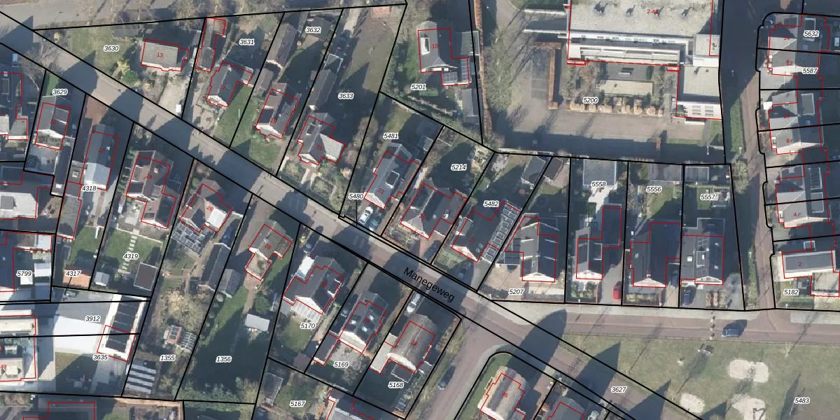 Manegeweg 25 is gelegen op kadastraal perceel VSN02D5214. Deze kadastrale aanduiding is uniek en wordt gebruikt door het Kadaster om eigendomsrechten en andere zakelijke rechten vast te leggen. Het perceel maakt onderdeel uit van de kadastrale gemeente Vaassen.