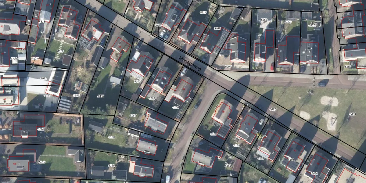 Het perceel waarop Manegeweg 34 staat heeft een oppervlakte van 386 m². Dit is een groot perceel. De perceeloppervlakte wordt geregistreerd door het Kadaster. Gedetailleerde informatie over de maten van dit perceel kunt u vinden in het rapport Kadastrale kaart met maatvoering van Manegeweg 34.