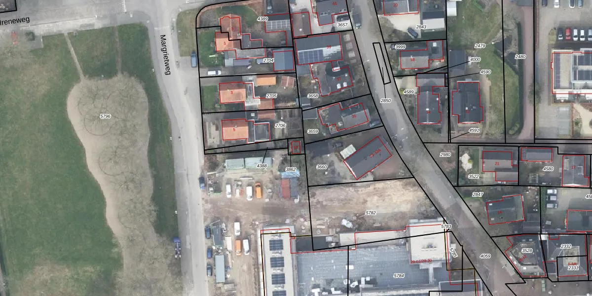 Het perceel waarop Margrietweg 5-T staat heeft een oppervlakte van 31 m². Dit is een klein perceel. De perceeloppervlakte wordt geregistreerd door het Kadaster. Gedetailleerde informatie over de maten van dit perceel kunt u vinden in het rapport Kadastrale kaart met maatvoering van Margrietweg 5-T.