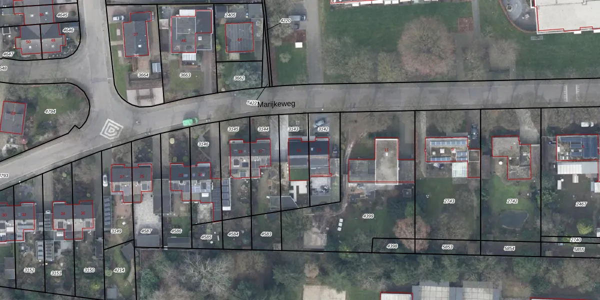 Marijkeweg 15 is gelegen op kadastraal perceel VSN02D3143. Deze kadastrale aanduiding is uniek en wordt gebruikt door het Kadaster om eigendomsrechten en andere zakelijke rechten vast te leggen. Het perceel maakt onderdeel uit van de kadastrale gemeente Vaassen.