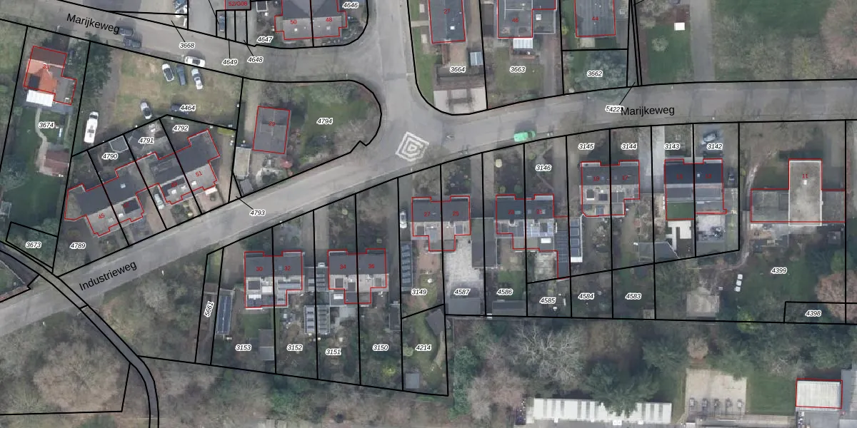 Het perceel waarop Marijkeweg 27 staat heeft een oppervlakte van 338 m². Dit is een groot perceel. De perceeloppervlakte wordt geregistreerd door het Kadaster. Gedetailleerde informatie over de maten van dit perceel kunt u vinden in het rapport Kadastrale kaart met maatvoering van Marijkeweg 27.