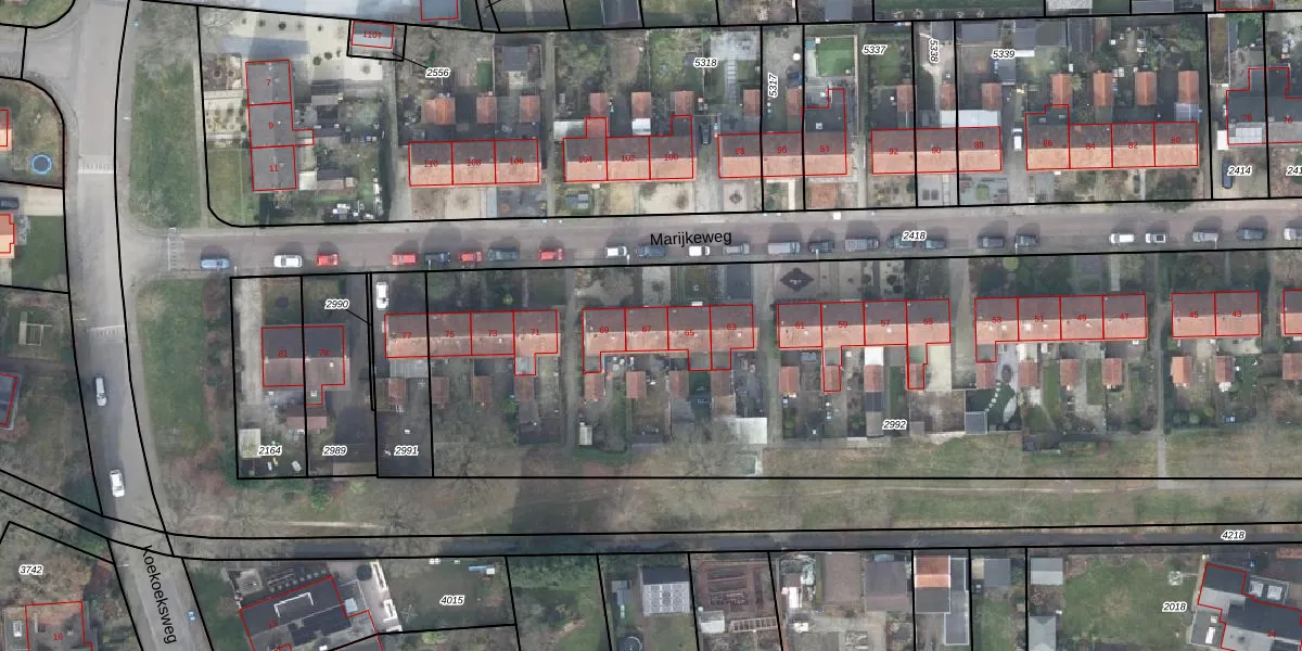 Het perceel waarop Marijkeweg 67 staat heeft een oppervlakte van 4940 m². Dit is een zeer groot perceel. De perceeloppervlakte wordt geregistreerd door het Kadaster. Gedetailleerde informatie over de maten van dit perceel kunt u vinden in het rapport Kadastrale kaart met maatvoering van Marijkeweg 67.