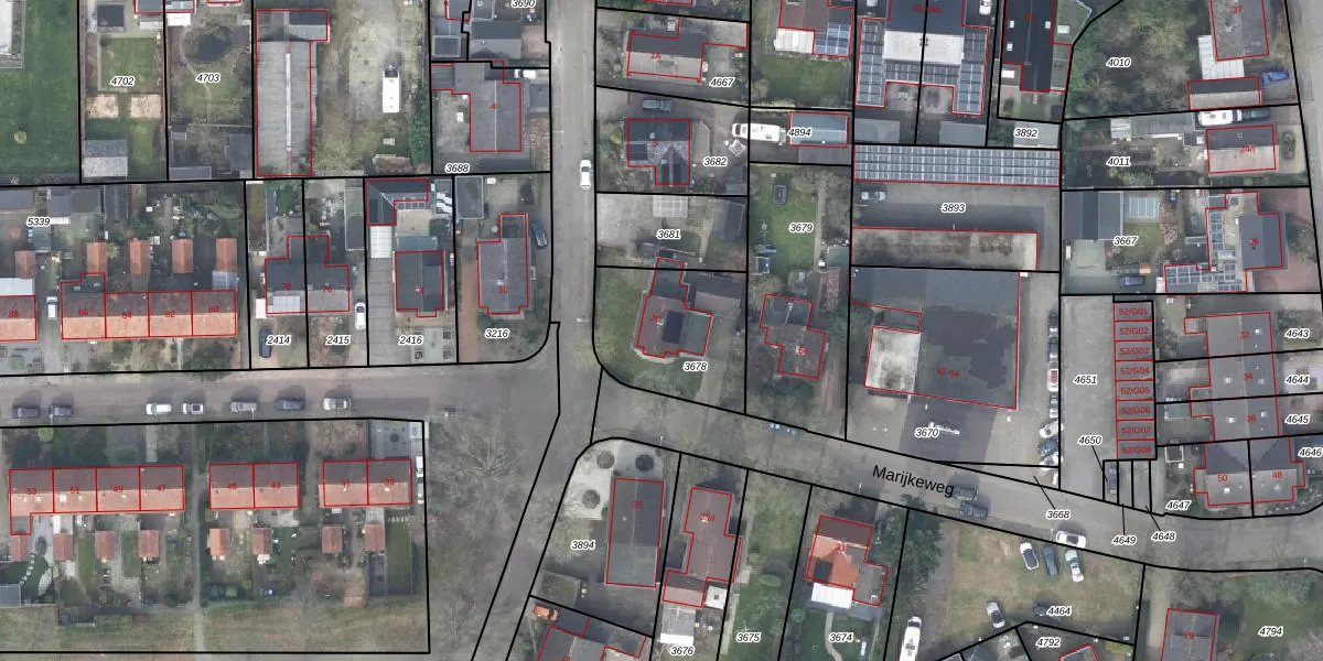 Gebruik de zoekbalk of klik op een perceel voor informatie over de adressen binnen dit perceel.