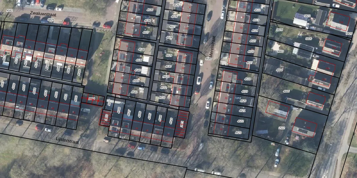 Gebruik de zoekbalk of klik op een perceel voor informatie over de adressen binnen dit perceel.