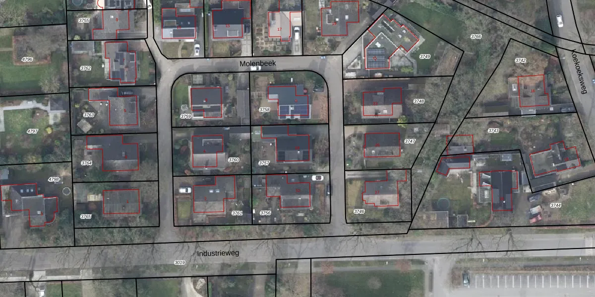 Het perceel waarop Molenbeek 10 staat heeft een oppervlakte van 432 m². Dit is een groot perceel. De perceeloppervlakte wordt geregistreerd door het Kadaster. Gedetailleerde informatie over de maten van dit perceel kunt u vinden in het rapport Kadastrale kaart met maatvoering van Molenbeek 10.