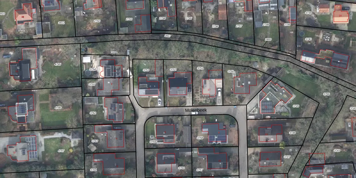Het perceel waarop Molenbeek 15 staat heeft een oppervlakte van 421 m². Dit is een groot perceel. De perceeloppervlakte wordt geregistreerd door het Kadaster. Gedetailleerde informatie over de maten van dit perceel kunt u vinden in het rapport Kadastrale kaart met maatvoering van Molenbeek 15.