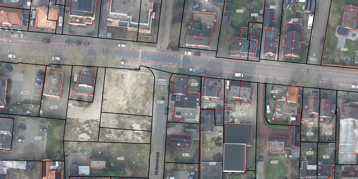 Het perceel waarop Molenstraat 1 staat heeft een oppervlakte van 479 m². Dit is een groot perceel. De perceeloppervlakte wordt geregistreerd door het Kadaster. Gedetailleerde informatie over de maten van dit perceel kunt u vinden in het rapport Kadastrale kaart met maatvoering van Molenstraat 1.