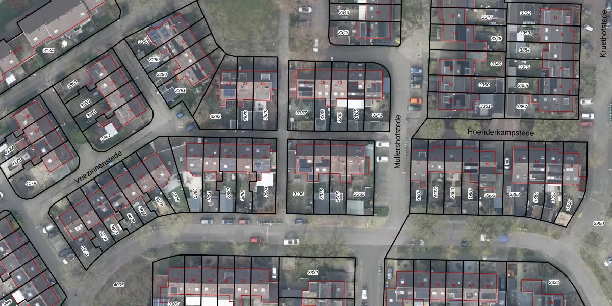 Het perceel waarop Mullershofstede 7 staat heeft een oppervlakte van 210 m². Dit is een middelgroot perceel. De perceeloppervlakte wordt geregistreerd door het Kadaster. Gedetailleerde informatie over de maten van dit perceel kunt u vinden in het rapport Kadastrale kaart met maatvoering van Mullershofstede 7.