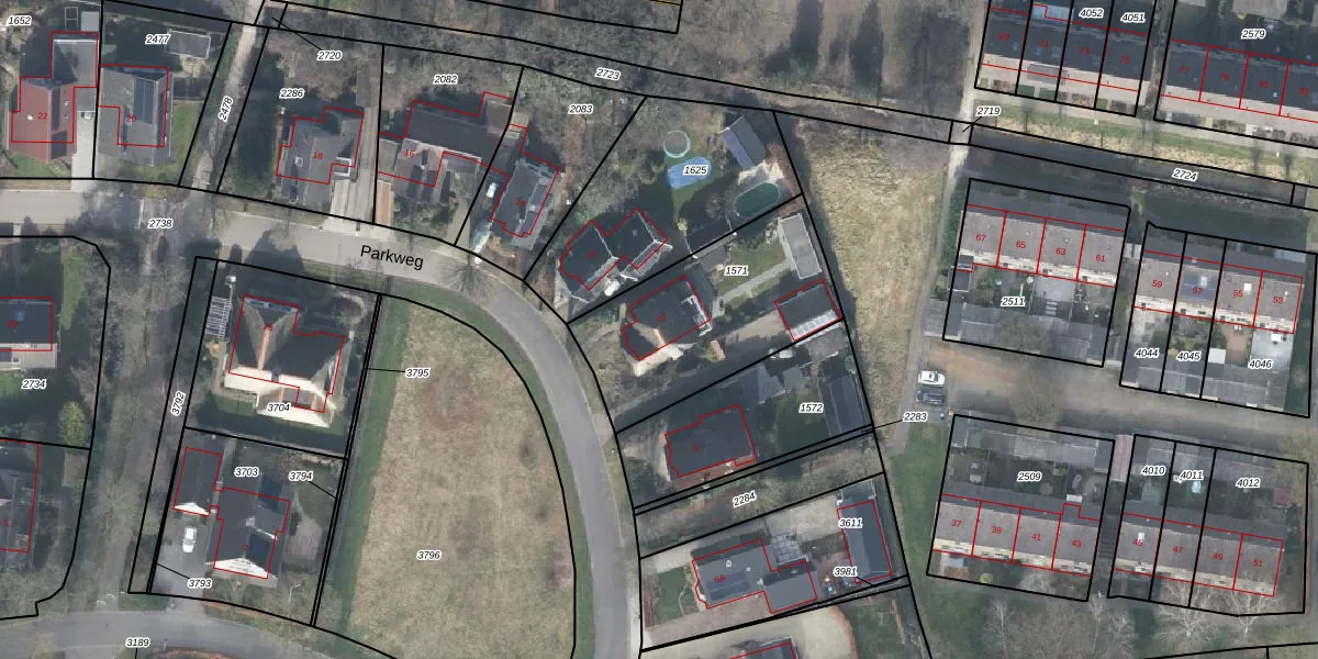 Gebruik de zoekbalk of klik op een perceel voor informatie over de adressen binnen dit perceel.