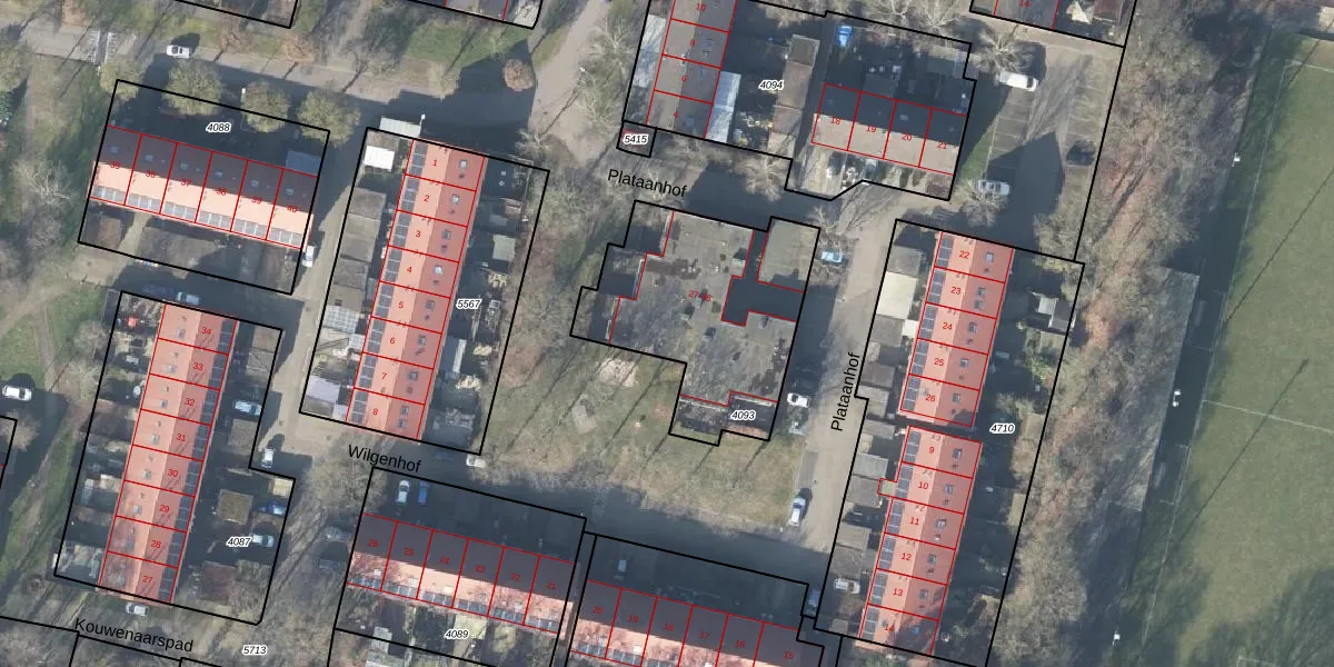 Het perceel waarop Plataanhof 29 staat heeft een oppervlakte van 825 m². Dit is een groot perceel. De perceeloppervlakte wordt geregistreerd door het Kadaster. Gedetailleerde informatie over de maten van dit perceel kunt u vinden in het rapport Kadastrale kaart met maatvoering van Plataanhof 29.