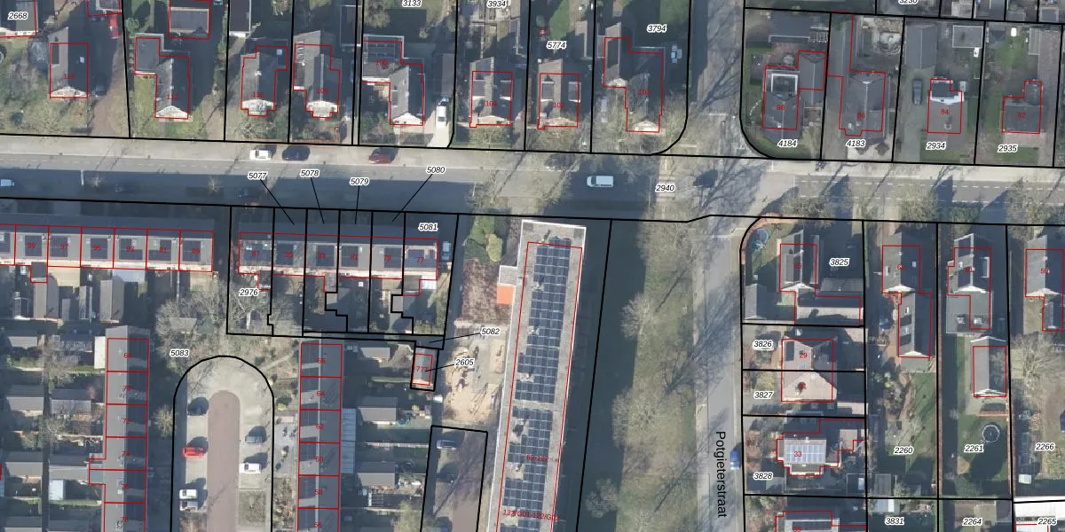 Het perceel waarop Potgieterstraat 106 staat heeft een oppervlakte van 8324 m². Dit is een zeer groot perceel. De perceeloppervlakte wordt geregistreerd door het Kadaster. Gedetailleerde informatie over de maten van dit perceel kunt u vinden in het rapport Kadastrale kaart met maatvoering van Potgieterstraat 106.