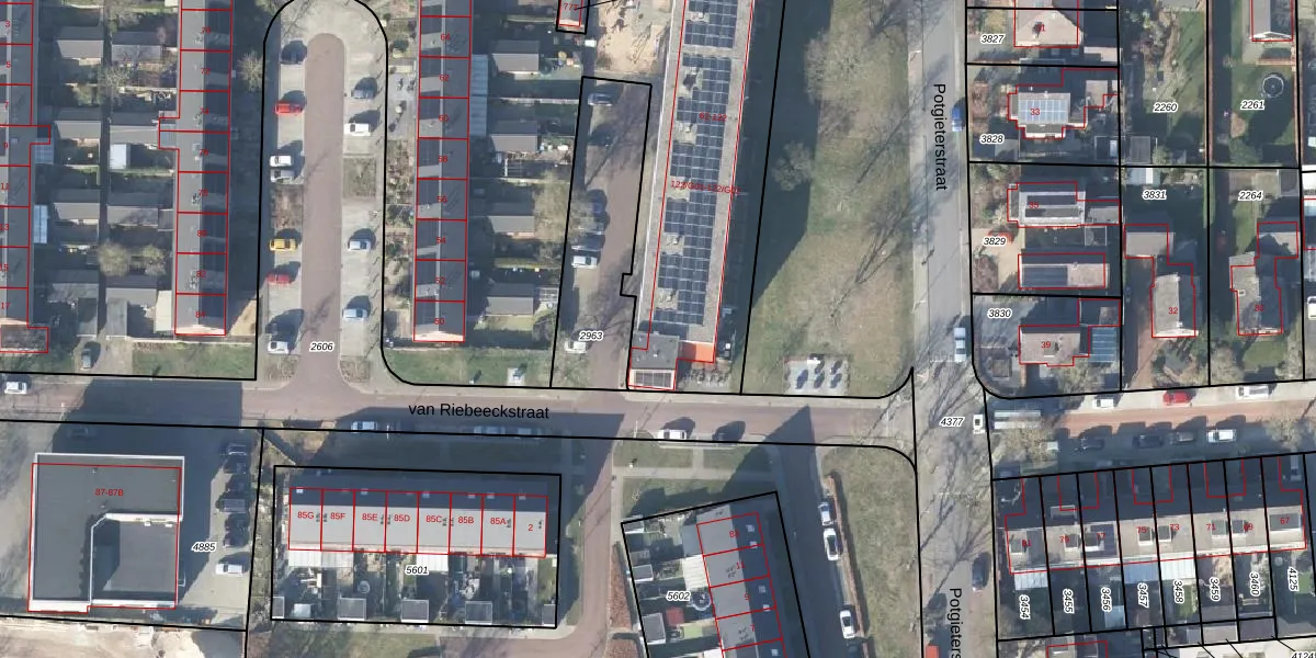 Het perceel waarop Potgieterstraat 122 staat heeft een oppervlakte van 8324 m². Dit is een zeer groot perceel. De perceeloppervlakte wordt geregistreerd door het Kadaster. Gedetailleerde informatie over de maten van dit perceel kunt u vinden in het rapport Kadastrale kaart met maatvoering van Potgieterstraat 122.