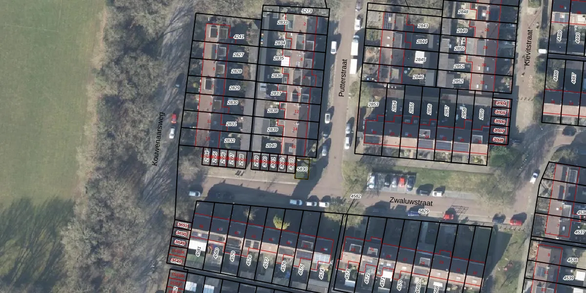 Gebruik de zoekbalk of klik op een perceel voor informatie over de adressen binnen dit perceel.