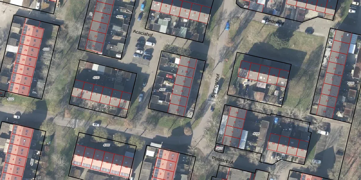 Het perceel waarop Seringenhof 19 staat heeft een oppervlakte van 819 m². Dit is een groot perceel. De perceeloppervlakte wordt geregistreerd door het Kadaster. Gedetailleerde informatie over de maten van dit perceel kunt u vinden in het rapport Kadastrale kaart met maatvoering van Seringenhof 19.