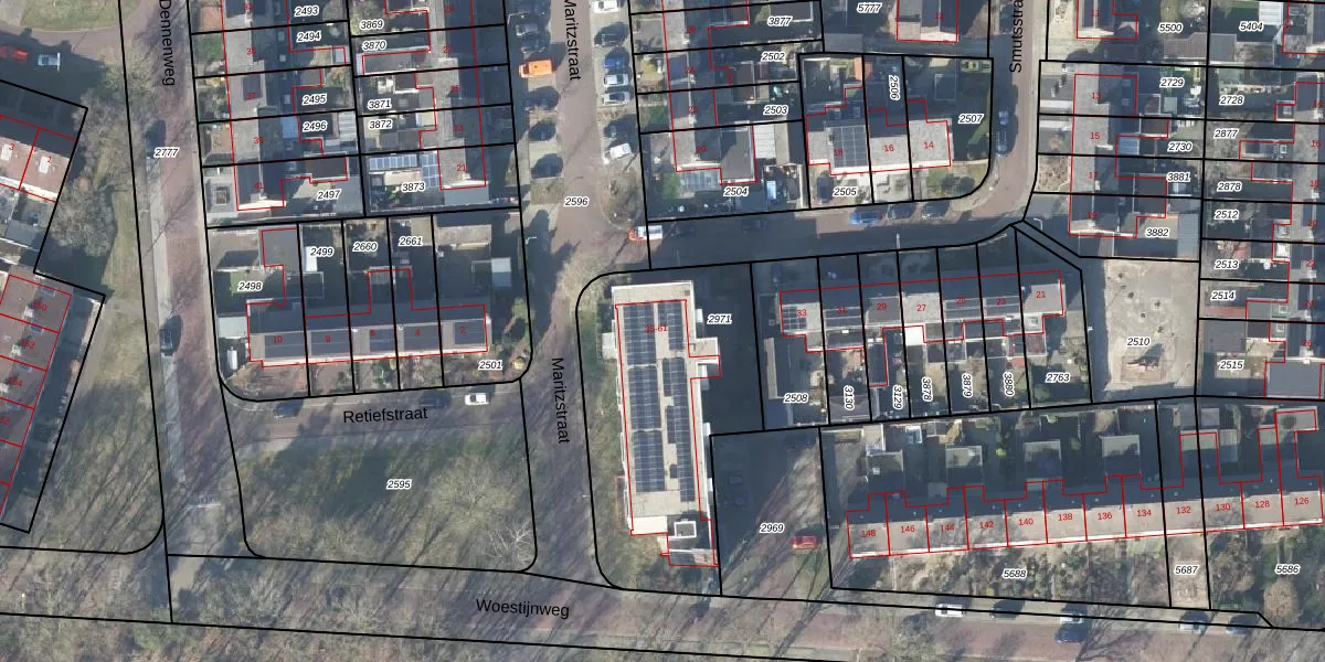 Het perceel waarop Smutsstraat 39 staat heeft een oppervlakte van 1100 m². Dit is een zeer groot perceel. De perceeloppervlakte wordt geregistreerd door het Kadaster. Gedetailleerde informatie over de maten van dit perceel kunt u vinden in het rapport Kadastrale kaart met maatvoering van Smutsstraat 39.