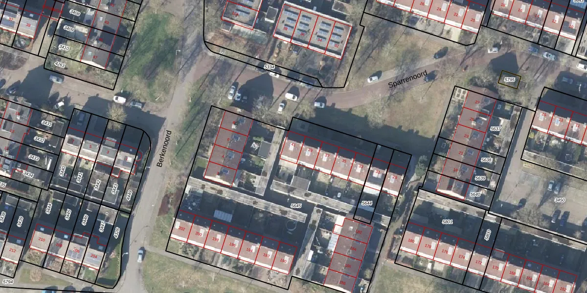 Het perceel waarop Sparrenoord 41 staat heeft een oppervlakte van 3544 m². Dit is een zeer groot perceel. De perceeloppervlakte wordt geregistreerd door het Kadaster. Gedetailleerde informatie over de maten van dit perceel kunt u vinden in het rapport Kadastrale kaart met maatvoering van Sparrenoord 41.