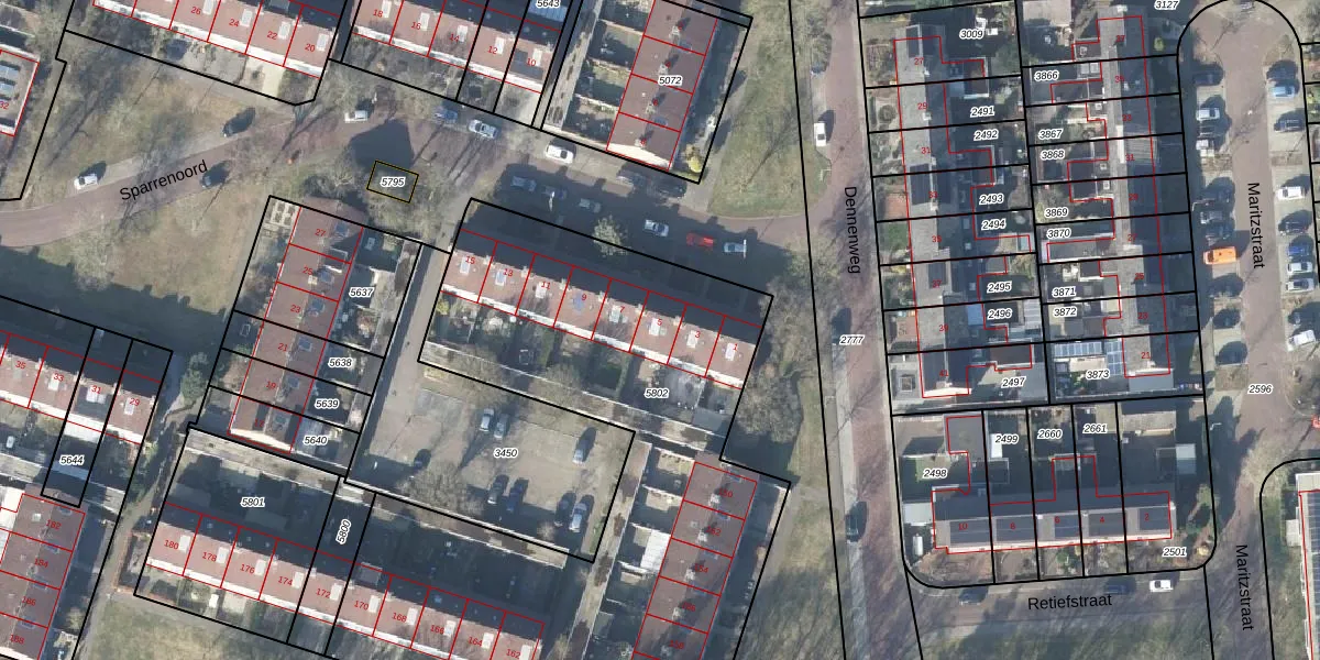 Het perceel waarop Sparrenoord 5 staat heeft een oppervlakte van 3087 m². Dit is een zeer groot perceel. De perceeloppervlakte wordt geregistreerd door het Kadaster. Gedetailleerde informatie over de maten van dit perceel kunt u vinden in het rapport Kadastrale kaart met maatvoering van Sparrenoord 5.
