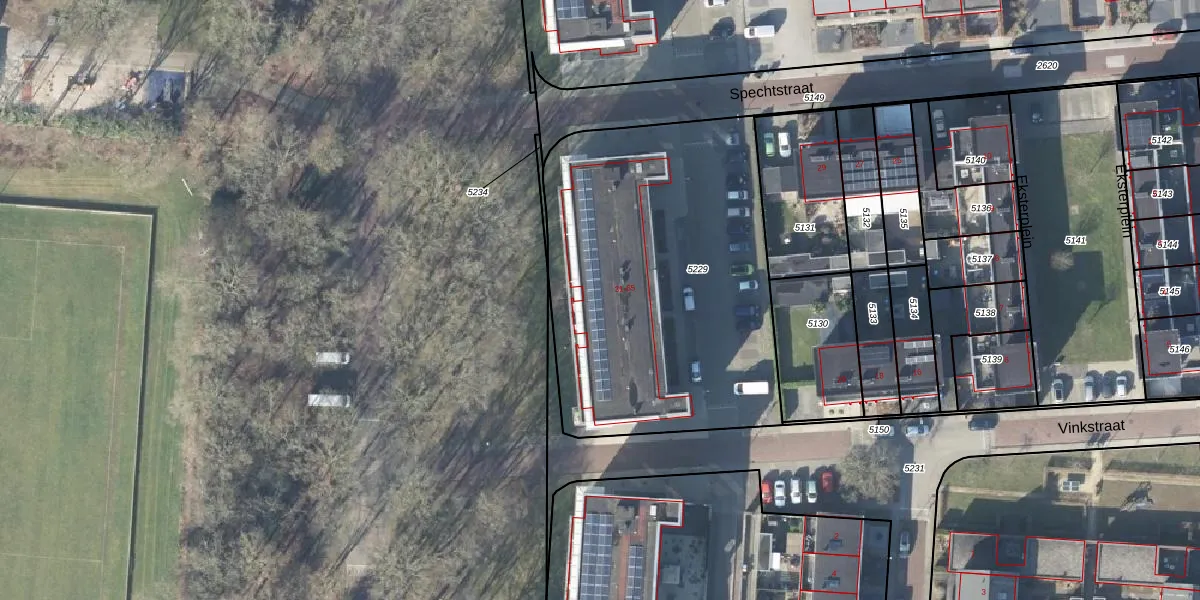 Het perceel waarop Spechtstraat 41 staat heeft een oppervlakte van 1830 m². Dit is een zeer groot perceel. De perceeloppervlakte wordt geregistreerd door het Kadaster. Gedetailleerde informatie over de maten van dit perceel kunt u vinden in het rapport Kadastrale kaart met maatvoering van Spechtstraat 41.