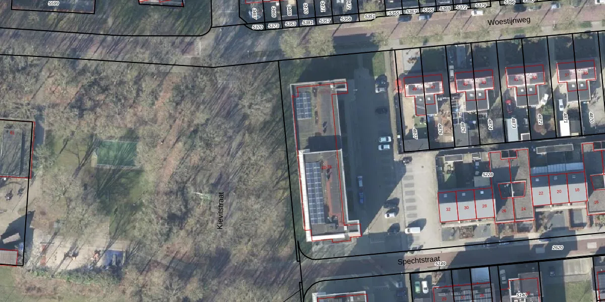 Het perceel waarop Spechtstraat 44 staat heeft een oppervlakte van 6660 m². Dit is een zeer groot perceel. De perceeloppervlakte wordt geregistreerd door het Kadaster. Gedetailleerde informatie over de maten van dit perceel kunt u vinden in het rapport Kadastrale kaart met maatvoering van Spechtstraat 44.