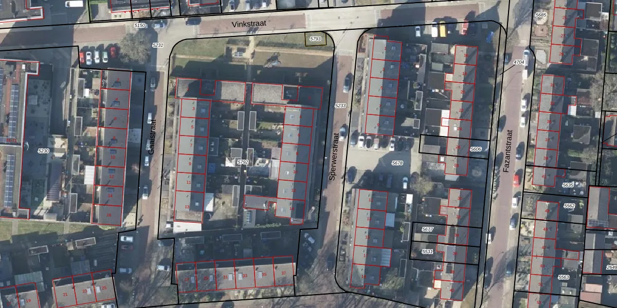 Het perceel waarop het adres ligt is VSN02-D-5792. De afkorting 'VSN02' staat voor kadastrale gemeente Vaassen. De gemiddelde perceelgrootte in Vaassen is 5555,21 m². Dit perceel is kleiner: de perceeloppervlakte bedraagt 4205 m². Het kleinste perceel in de kadastrale gemeente is 0 m² groot. De grootste perceeloppervlakte is 1,98 km². Er zijn 20 adressen aanwezig op het perceel. In de Basisregistratie Kadaster (BRK) werden de grenzen van het perceel geregistreerd op 06-12-2023.