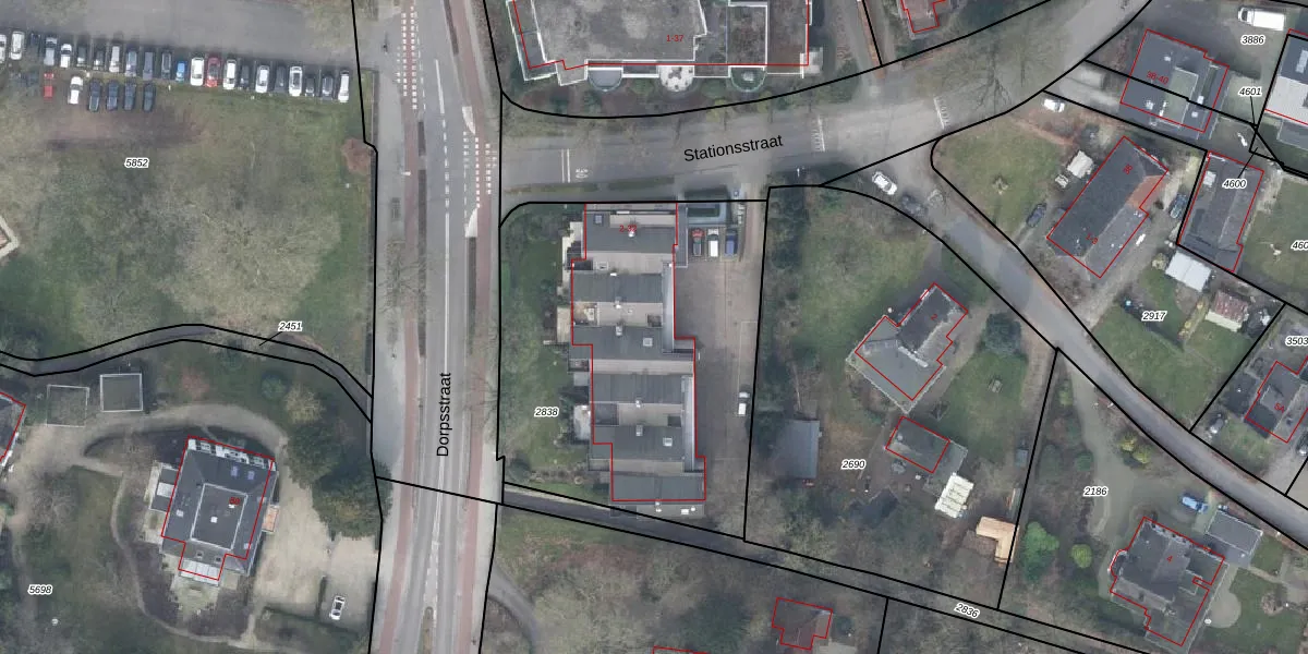 Het perceel waarop Stationsstraat 14 staat heeft een oppervlakte van 1863 m². Dit is een zeer groot perceel. De perceeloppervlakte wordt geregistreerd door het Kadaster. Gedetailleerde informatie over de maten van dit perceel kunt u vinden in het rapport Kadastrale kaart met maatvoering van Stationsstraat 14.