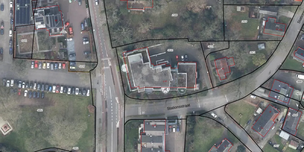 Het perceel waarop Stationsstraat 17 staat heeft een oppervlakte van 2100 m². Dit is een zeer groot perceel. De perceeloppervlakte wordt geregistreerd door het Kadaster. Gedetailleerde informatie over de maten van dit perceel kunt u vinden in het rapport Kadastrale kaart met maatvoering van Stationsstraat 17.