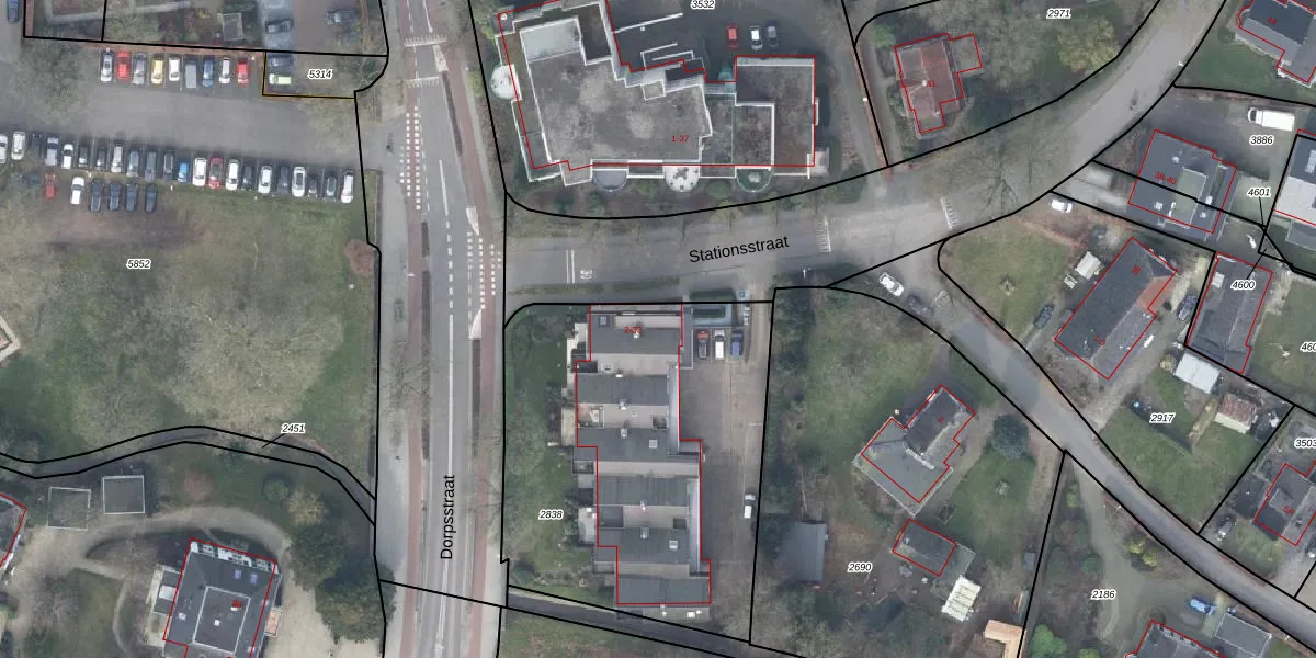 Het perceel waarop Stationsstraat 2 staat heeft een oppervlakte van 1863 m². Dit is een zeer groot perceel. De perceeloppervlakte wordt geregistreerd door het Kadaster. Gedetailleerde informatie over de maten van dit perceel kunt u vinden in het rapport Kadastrale kaart met maatvoering van Stationsstraat 2.