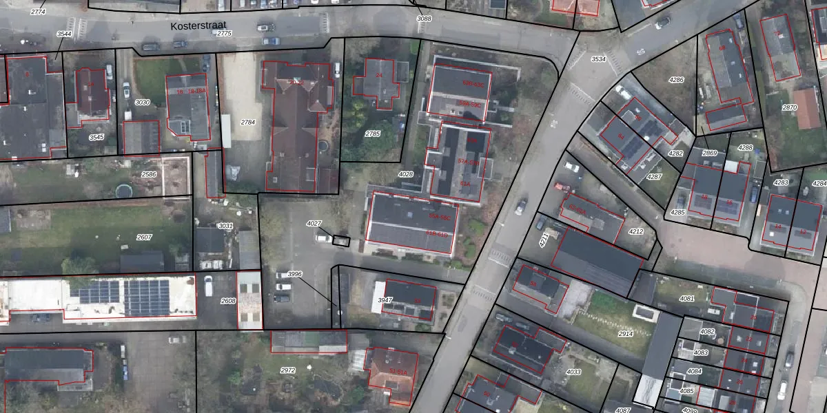 Het perceel waarop Stationsstraat 55-B staat heeft een oppervlakte van 2539 m². Dit is een zeer groot perceel. De perceeloppervlakte wordt geregistreerd door het Kadaster. Gedetailleerde informatie over de maten van dit perceel kunt u vinden in het rapport Kadastrale kaart met maatvoering van Stationsstraat 55-B.