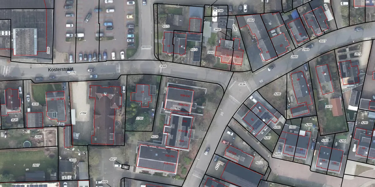 Het perceel waarop Stationsstraat 63-B staat heeft een oppervlakte van 2539 m². Dit is een zeer groot perceel. De perceeloppervlakte wordt geregistreerd door het Kadaster. Gedetailleerde informatie over de maten van dit perceel kunt u vinden in het rapport Kadastrale kaart met maatvoering van Stationsstraat 63-B.