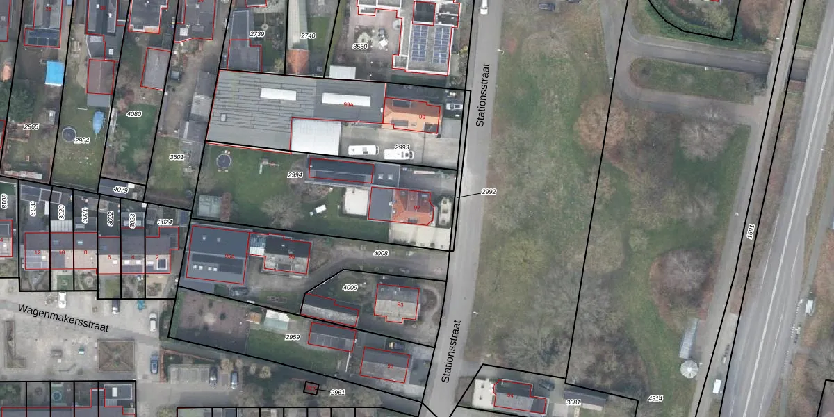 Het perceel waarop Stationsstraat 97 staat heeft een oppervlakte van 1185 m². Dit is een zeer groot perceel. De perceeloppervlakte wordt geregistreerd door het Kadaster. Gedetailleerde informatie over de maten van dit perceel kunt u vinden in het rapport Kadastrale kaart met maatvoering van Stationsstraat 97.